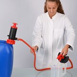 Avec une longueur de tuyau de 1,5 mètre et un robinet de sortie facile à utiliser, il permet de remplir confortablement de l’eau, des solutions diluées ou d’autres fluides peu agressifs à partir de fûts et de bidons.