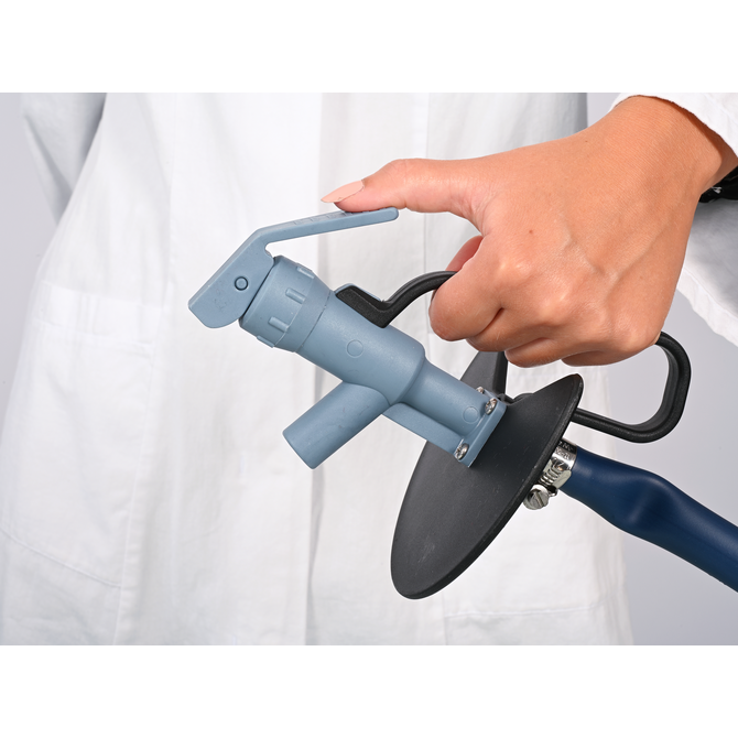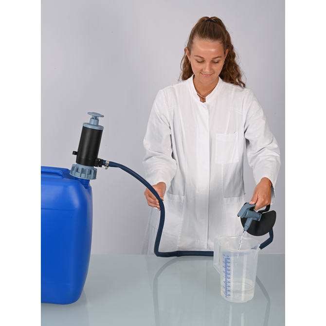 Ce tuyau de vidange spécial avec robinet d’arrêt a été développé comme accessoire pour la Bürkle PumpMaster en bleu — la pompe à fût conçue pour les liquides pétrochimiques. D’une longueur de 1,5 mètre et doté d’un robinet d’arrêt intégré à l’extrémité, il permet un remplissage pratique et sûr d’huiles minérales, de diesel ou d’autres liquides pétrochimiques non inflammables directement depuis le fût. Sa construction robuste garantit que le tuyau reste stable même en cas d’utilisation fréquente et assure un transfert sûr sans fuites.