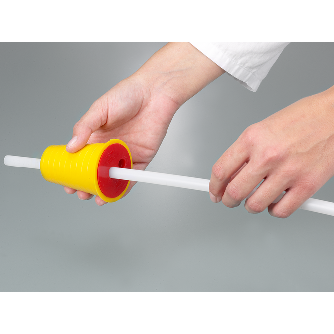 Il tubo di mandata della pompa di riempimento è costituito da un unico pezzo e può essere facilmente accorciato all'altezza del rispettivo contenitore utilizzando la taglierina in dotazione. Ciò offre la massima flessibilità e garantisce un buon svuotamento residuo del contenitore. Anche l'uscita del tubo di mandata può essere accorciata, se necessario.