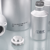 Le pratiche bottiglie da trasporto sono realizzate in robusto alluminio puro (AL 99,5) e sono dotate di un tappo a vite e di una solida filettatura interna per una chiusura ermetica e sicura.