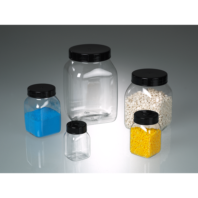 I vasi quadrati a collo largo sono utilizzati per la conservazione in diverse applicazioni: Nei laboratori per campioni, sostanze chimiche e materiali di ricerca; nell'industria farmaceutica per polveri, compresse e unguenti; nell'industria alimentare per ingredienti, spezie ed erbe; nell'industria per piccole parti.