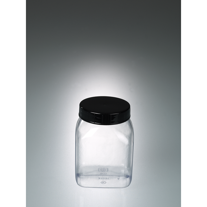 - Barattolo a bocca larga, quadrato, PVC e tappo a vite nero con inserto in schiuma