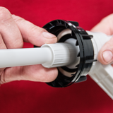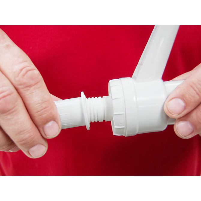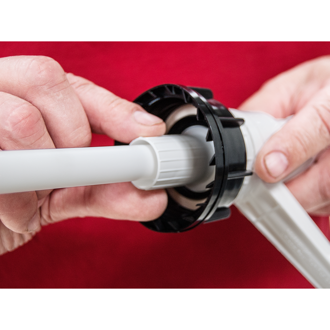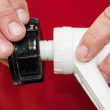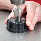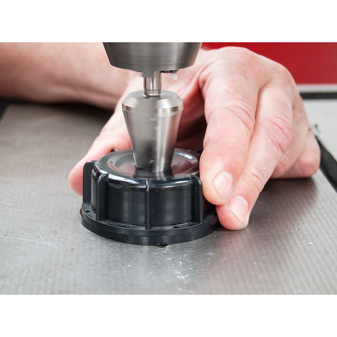 定量ポンプは、既存の容器キャップにお客様ご自身で取り付けてください(位置決め内径表を参照)。その際、キャップに適切な穴を開けます。その後、ポンプを穴から挿入し、下からネジで固定します。