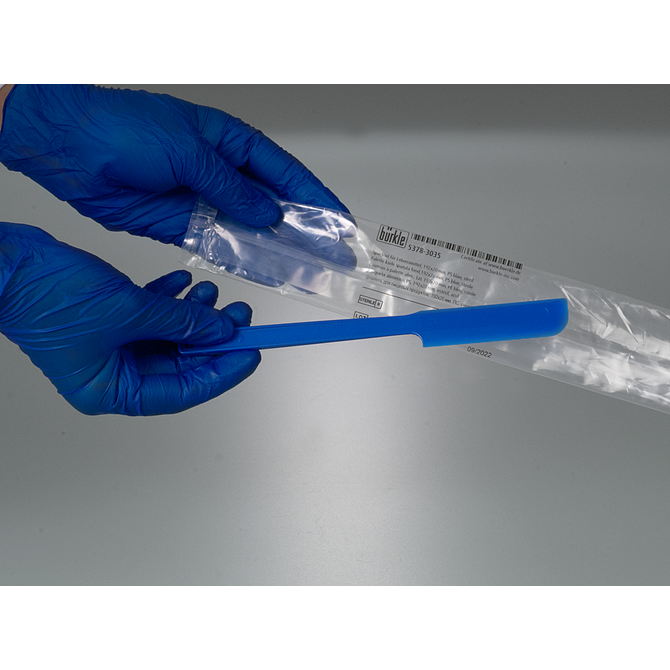 サンプリング用パレットナイフスパチュラは、ペーストやクリームのような粘性のある媒体を塗布、分配、均一に広げるために使用できます。パレットナイフスパチュラは、様々な容器の角やカーブにも簡単に届き、ボウルの掻き出し、残留物の除去、ビュルクルの容量スプーンや分注スプーンの拭き取りに適しています。