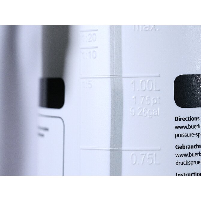 透明な覗き窓があるため、充填レベルが見やすく、ゴム製のベースリングが確実なグリップを保証します。調節可能なノズルにより、細かい霧から強力な噴射まで、スプレーパターンを調節できます。人間工学に基づいて設計されたハンドルは、持ちやすく快適です。