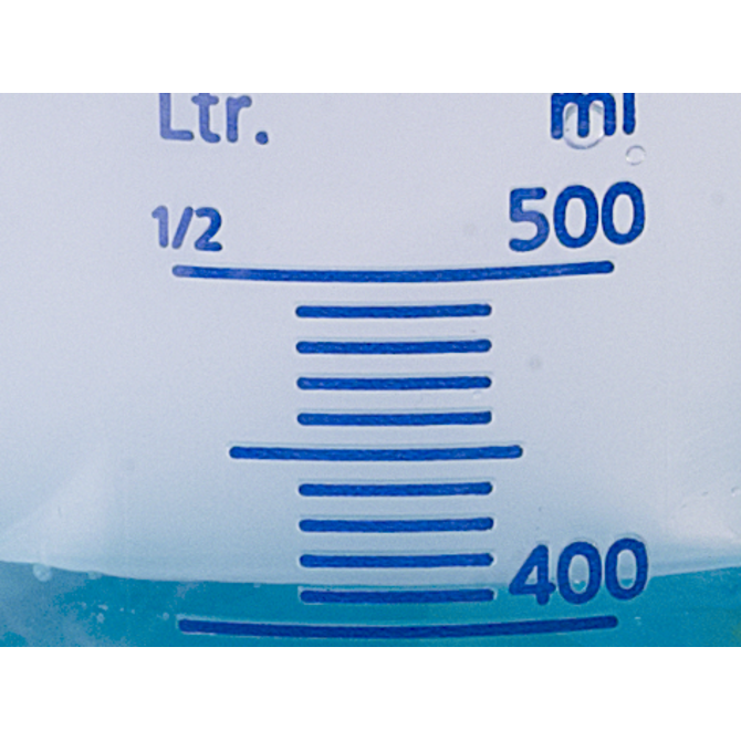 取っ手付き目盛り付きビーカー, 青色目盛り