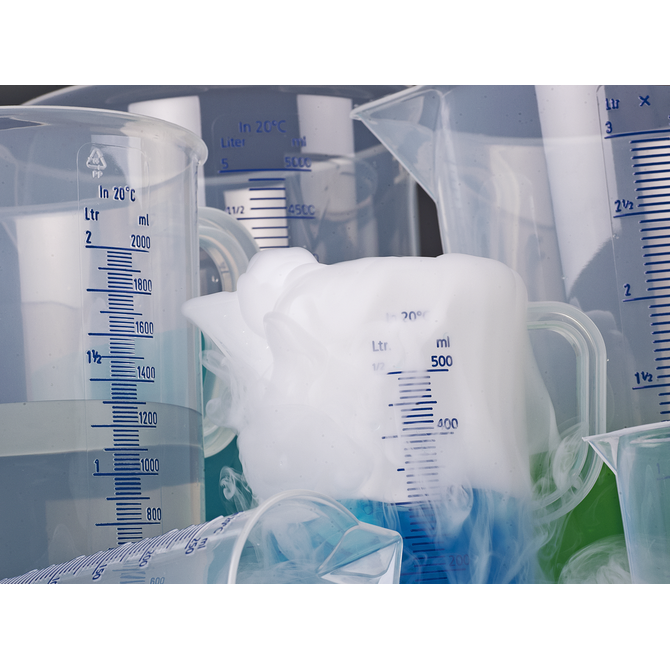 目盛り付きビーカーは、化学製品の宣伝手段として最適です。