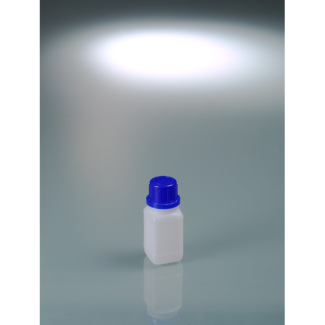 円錐形のシールとタンパーエビデンスリングが付いた青いPP製タンパーエビデンススクリューキャップは、完全に漏れのない保管を保証します。正方形のボトル形状は、凹型のラベルエリアと相まって、ラベリングと整理を容易にします。細いネックは、正確な注入を可能にし、液体がこぼれるのを防ぎます。