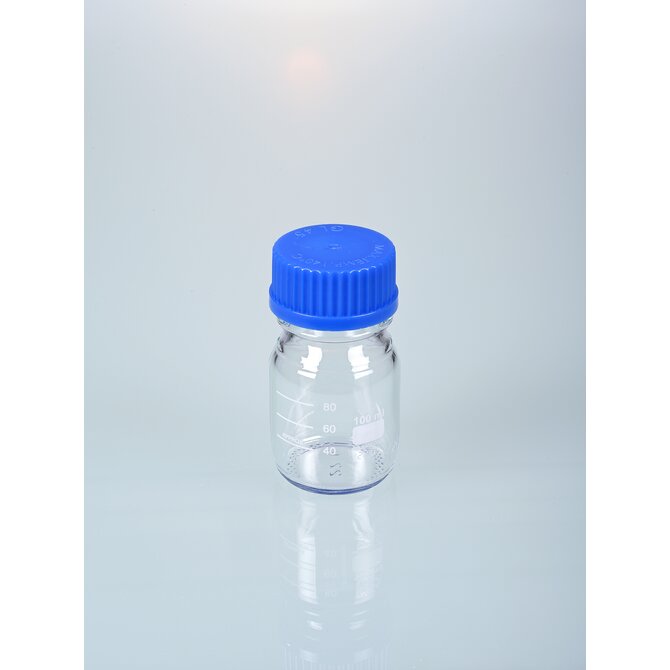 Szklane butelki na próbki są idealne do użytku w laboratorium, do przechowywania i transportu różnych substancji. Każda butelka ma niebieską zakrętkę i pierścień z PP. Łatwa do odczytania podziałka i duży obszar etykietowania ułatwiają identyfikację zawartości. Pierścień do nalewania umożliwia czyste, niekapiące nalewanie.