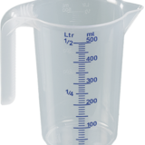 Uniwersalne zlewki miarowe z niezniszczalną podziałką. Trzy specjalnie uformowane dziobki umożliwiają łatwe nalewanie płynów.