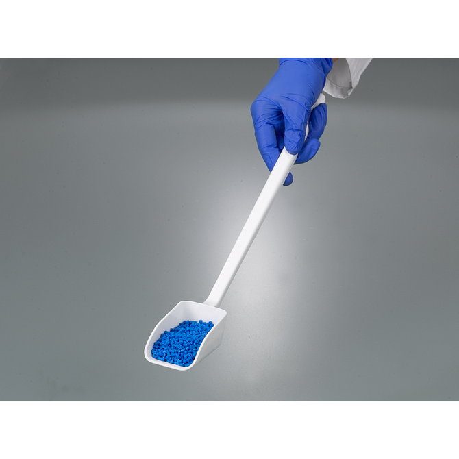 Łyżka z bardzo długim uchwytem wykonana z wysokiej jakości białego polistyrenu jest produkowana w pomieszczeniach czystych klasy ISO 7 i indywidualnie pakowana w celu zapewnienia maksymalnej czystości.