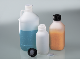 Butelki z wąską szyjką są całkowicie szczelne. Wykonane z przezroczystego HDPE, w komplecie z nakrętką HDPE z wkładką PTFE.