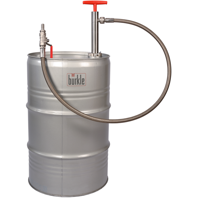 Ideal para uso em ambientes industriais e laboratoriais para transferir líquidos de forma limpa de tambores ou bombonas para recipientes menores. Por exemplo, em oficinas, ao distribuir lubrificantes, no setor químico, para dosar ácidos ou solventes, ou no setor alimentício, ao transferir ingredientes. A mangueira de drenagem com torneira amplia o alcance de uma bomba e garante que os líquidos possam ser direcionados para os recipientes de destino de forma controlada e segura, sem levantar ou inclinar pesadamente os recipientes e sem perdas por derramamento.