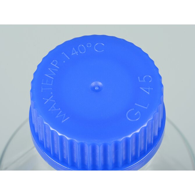 Os frascos de amostra de vidro são ideais para uso em laboratório, para armazenar e transportar várias substâncias. Cada frasco tem uma tampa azul e um anel de PP. A graduação de fácil leitura e a grande área de rotulagem facilitam a identificação do conteúdo. O anel de vazamento permite um vazamento limpo e sem gotejamento.