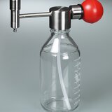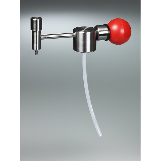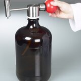 - Segure o recipiente de enchimento sob a saída, pressione o botão de saída e encha. Se necessário, uma mangueira de PTFE pode ser conectada à saída.