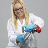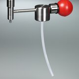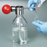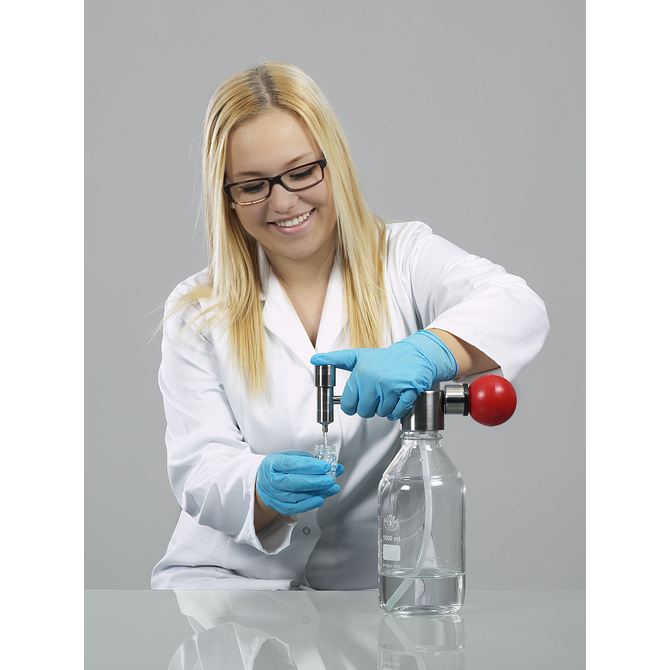 A saída de fechamento automático (função de parada automática) da bomba de solvente Mini permite um enchimento absolutamente preciso sem gotejamento. Graças à dosagem simples, até mesmo os menores recipientes, por exemplo, tubos de ensaio, podem ser enchidos sem problemas. Uma mangueira (Ø interno 6 mm) pode ser conectada ao bocal de saída como opção, para que os recipientes mais distantes também possam ser enchidos com segurança.