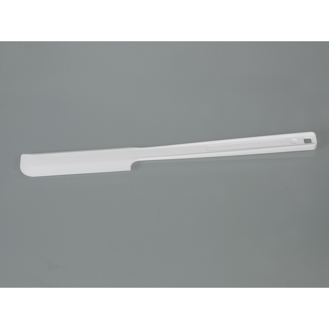 A borda longa dimensionalmente estável do raspador de plástico é ideal para cortar meios viscosos. Uma pequena ponta na borda longa pode ser usada para rasgar, por exemplo, filme de embalagem. O raspador também é adequado para agitar e misturar.