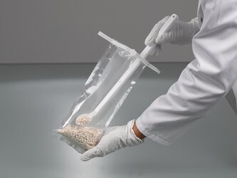 A concha é adequada para a coleta de amostras de líquidos e meios viscosos, bem como de pós e granulados. A concha tem um fundo muito liso e cantos arredondados. Isso permite alcançar qualquer canto de um recipiente ou retirar o meio diretamente do fundo do recipiente.