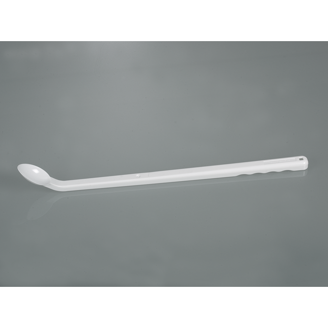 A colher com bojo curvo é adequada para uma ampla gama de meios diferentes, incluindo pós, granulados, pastas e líquidos. O formato angular da colher também é bom para alcançar os cantos de um recipiente. O cabo longo da colher de plástico permite esvaziar facilmente os resíduos de recipientes grandes e também pode alcançar locais de difícil acesso, como galões com gargalos estreitos.