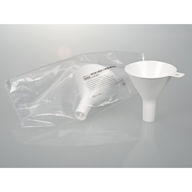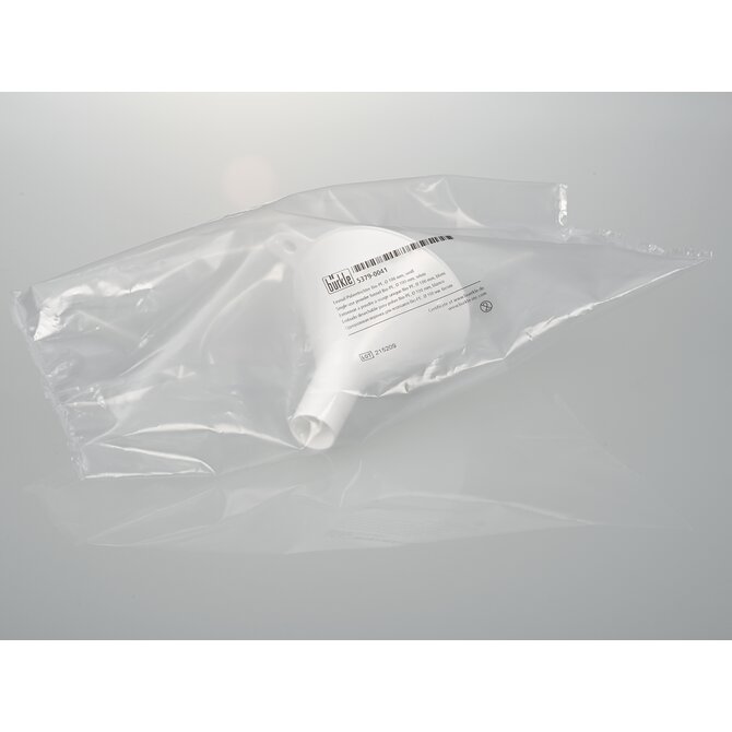 O robusto funil descartável para substâncias em pó é ideal para uso em laboratórios e salas limpas ou para amostragem. Ele pode ser usado em produtos farmacêuticos, químicos e cosméticos e nas indústrias de alimentos e ração animal, bem como em todas as áreas em que a pureza especial é importante.