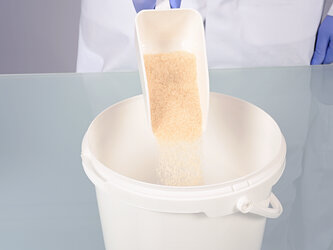 A colher com bojo curvo é adequada para uma ampla gama de meios diferentes, incluindo pós, granulados, pastas e líquidos. O formato angular da colher também é bom para alcançar os cantos de um recipiente. O cabo longo da colher de plástico permite esvaziar facilmente os resíduos de recipientes grandes e também pode alcançar locais de difícil acesso, como galões com gargalos estreitos.