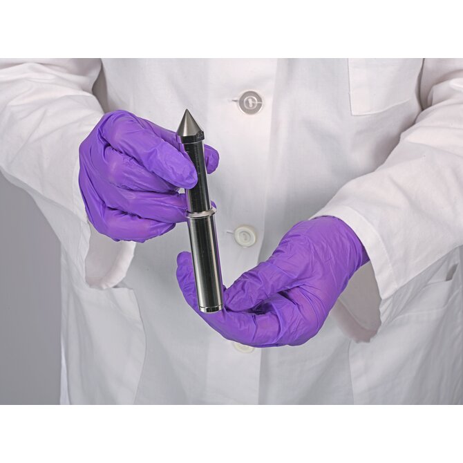 A câmara de coleta está disponível em dois tamanhos, adequados à respectiva faixa de volume das ponteiras. Ela apresenta uma superfície lisa que pode ser limpa sem resíduos e esterilizada. A câmara de coleta garante que a amostra de pó coletada seja armazenada com segurança até que seja analisada e permite mudanças rápidas de volume com a simples troca das ponteiras.