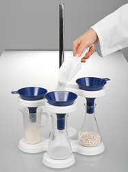 O funil descartável garante a ausência de perdas aquando da transferência de amostras líquidas ou de sólidos de fluxo livre. Isto faz deste prático e higiénico auxiliar de enchimento um acessório útil para amostragem ou em laboratórios.