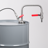O sistema de distribuição de solventes com cotovelo de descarga está equipado com uma bomba de tambor com um cotovelo de descarga fixo. A bomba de tambor dispõe de um tubo de imersão regulável de forma contínua e adaptável ao recipiente.