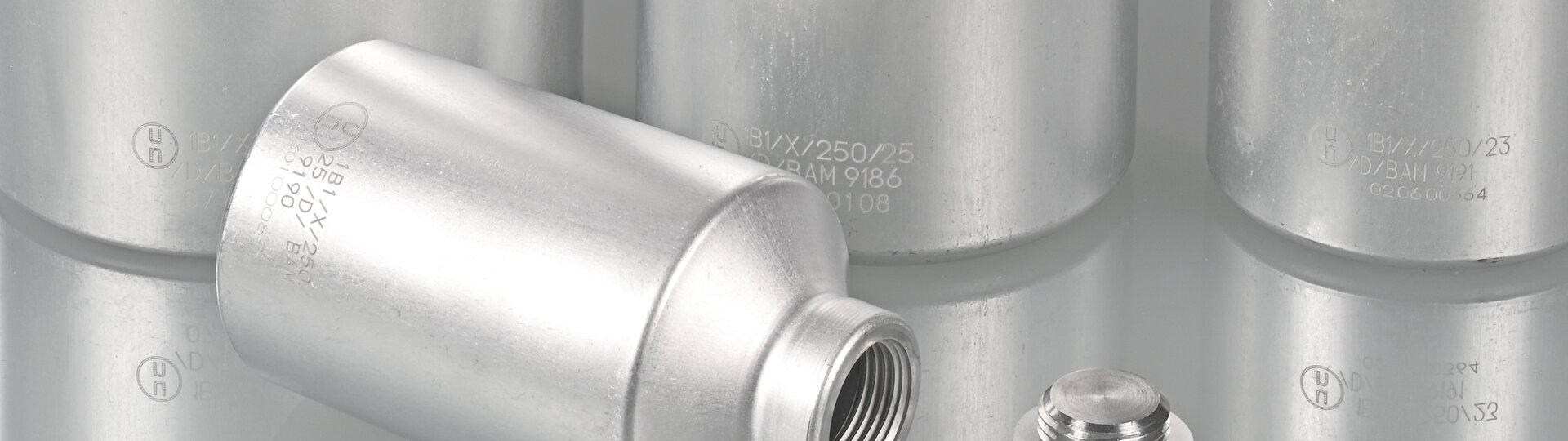 A identificação contém o símbolo das embalagens ensaiadas pela ONU, o código do material do recipiente, o grupo de embalagem, a pressão de ensaio em kPa, o ano de fabrico, o país de aprovação, o serviço de registo, o número de aprovação e o fabricante.