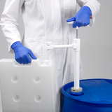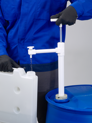 Devido à elevada resistência química dos materiais húmidos PTFE e FEP, esta bomba de tambor também pode ser utilizada para encher líquidos que atacam materiais convencionais como PP ou PVC (com exceção do flúor elementar).