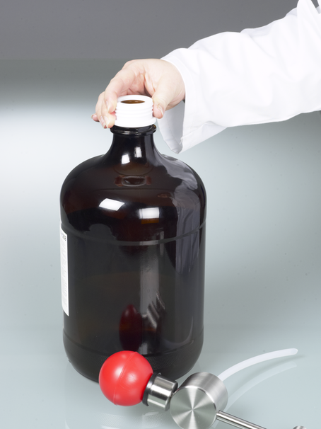 Filtro para a mangueira de ar da bomba de solvente operada por pedal, protege o meio de enchimento de partículas de pó que podem ser introduzidas pela bomba de ar operada por pedal. Isto torna possível um enchimento particularmente puro.
