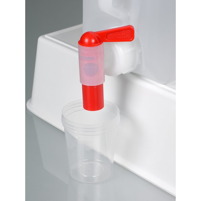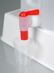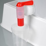Cap and tap in one - the handy screw cap with drain tap allows liquids to be dispensed from canisters in a controlled and metered manner, even without a threaded nozzle.