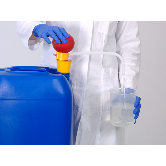 Одноразовый ручной насос OTAL® подходит для розлива маловязких жидкостей до 500 мПас, например, кислот, щелочей, чистящих средств, жидкостей в пищевом секторе.