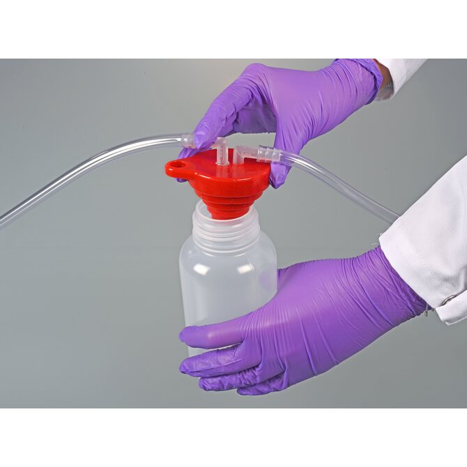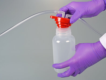 - Универсальный адаптер для различных горловин бутылок (Ø 24-50 мм) и бутылок для образцов (100-1000 мл)