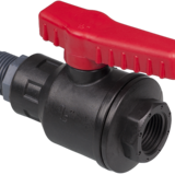 Шаровой кран из ПП с внешней / внутренней резьбой, армированный стекловолокном, шар из ПП, ручка с уплотнительным кольцом из БНК, предназначенным для пищевых продуктов и уплотнением из ПТФЭ.