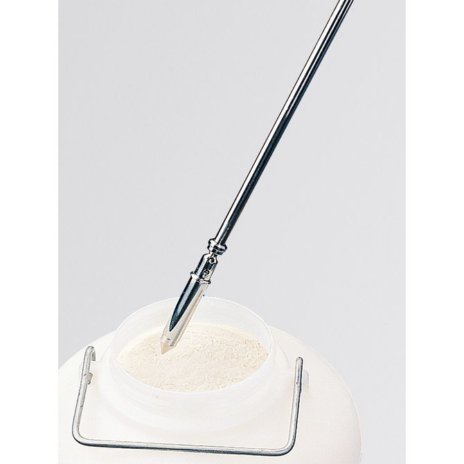 İlaç alanında toz için örnekleyici, paslanmaz çelik AISI 316L, malzeme 1.4404'ten yapılmıştır. Özellikle ince uç, numuneyi almak için kolayca ve derinlemesine yerleştirilebilir. Ucun konik girişi, çok küçük veya daha büyük miktarların toplanmasına izin verir. StickProof, mükemmel ve kolay temizlik için kenarları, olukları veya yarıkları olmayan tek parça halinde üretilmiştir. Numune, çıkış ucundan doğrudan numune alma torbasına doldurulabilir. Torbayı sağlam bir kelepçe ile sabitleyin.