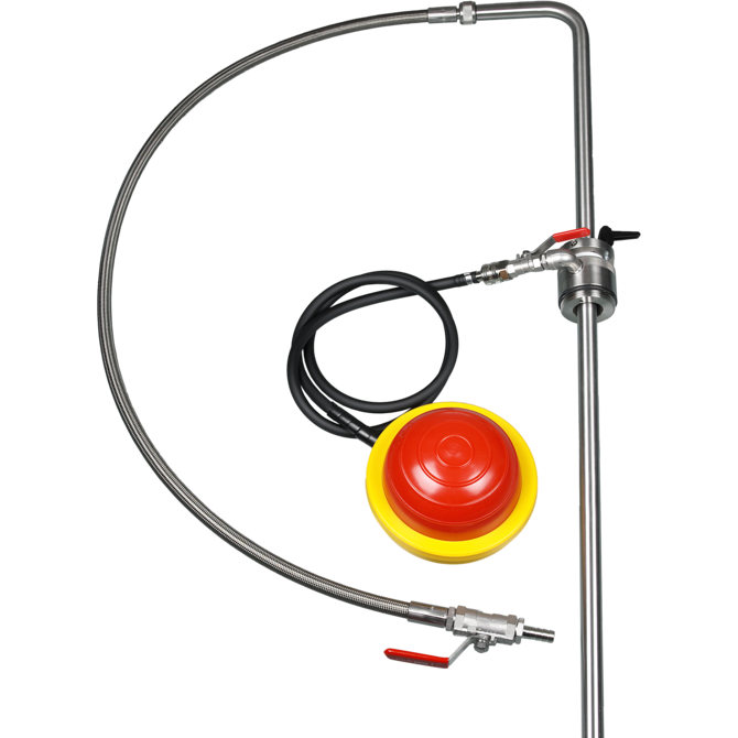 Solvent pompasının sağlam, dayanıklı endüstriyel versiyonu uzun bir hizmet ömrü sağlar. Pompa aşırı basınç prensibine göre çalışır. Ayak aktüatörü ile tankta aşırı basınç oluşturularak sıvının kaptan dışarı çıkması sağlanır. Ayak aktüatörlü pompanın ayakla kolay kullanımı, dağıtım için her iki eli de serbest bırakır. Hava hortumu, pratik klips bağlantısı ile hızlı ve kolay bir şekilde bağlanabilir ve çıkarılabilir.