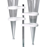 İki Imhoff huni tutuculu raf, sedimantasyon sırasında Imhoff hunilerini tutmak, saklamak veya depolamak için güvenli ve pratik bir yol sağlar.