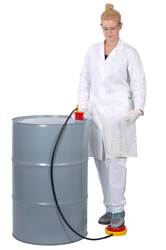 一次性脚踏泵适用于灌装 500 mPas 以下的稀薄至低粘度液体,如酸、碱、清洁剂和食品行业的液体。该泵适用于最大约 220 升的密闭容器。