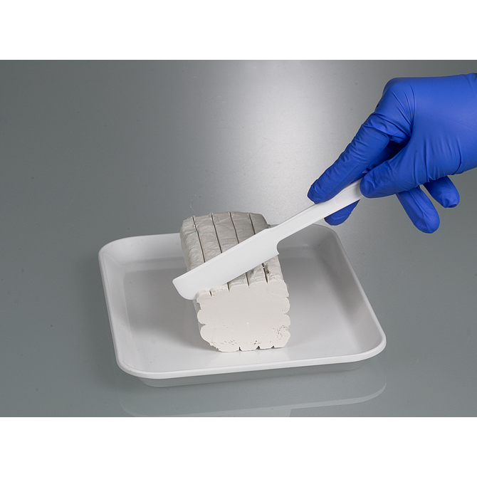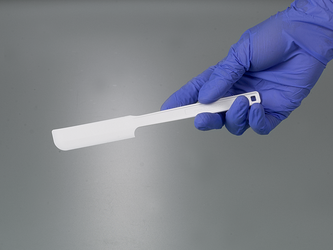 塑料刮刀的长边尺寸稳定,是切割粘性介质的理想工具。长边缘上的小尖端可用于撕裂包装膜等。刮刀还适用于搅拌和混合。