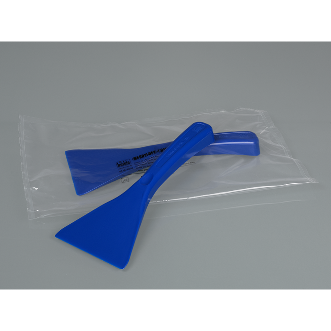 用于食品的 SteriPlast® 刮刀由蓝色聚苯乙烯制成,在我们的 7 级洁净室(10,000)中生产,单独包装供一次性使用,然后通过伽马射线灭菌。