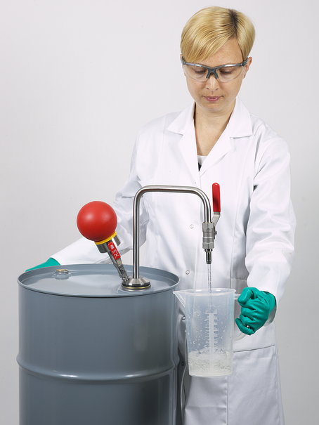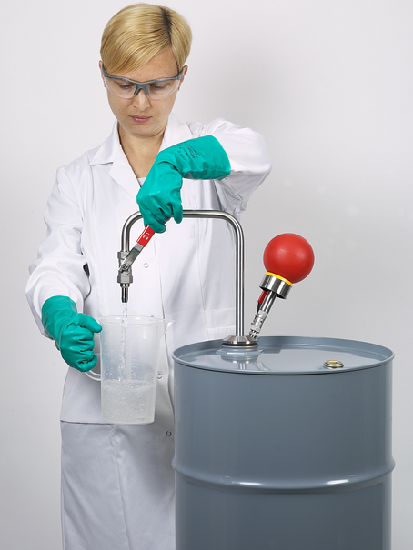 手动溶剂泵用于无污染地去除有机溶剂和调味剂。手动泵根据超压原理工作。泵球在罐中产生超压,迫使液体从容器中流出。
