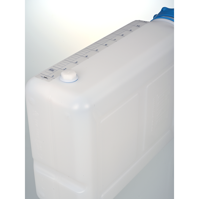 Eine selbstklebende blaue Literskala zum einfachen Ablesen des Füllstandes ist als Zubehör erhältlich.