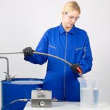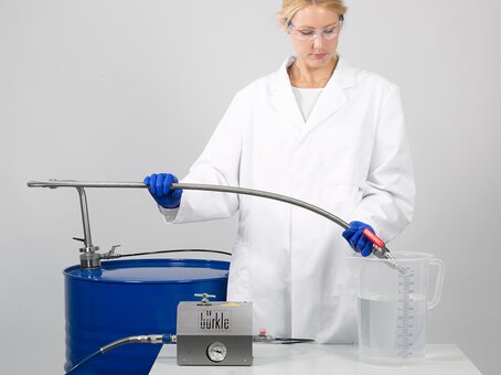 Χειροκίνητη αντλία διαλυτών για την απομάκρυνση οργανικών διαλυτών και αρωματικών ουσιών χωρίς ρύπανση. Η χειροκίνητη αντλία λειτουργεί σύμφωνα με την αρχή της υπερπίεσης. Με τη σφαίρα της αντλίας δημιουργείται υπερπίεση στο δοχείο, η οποία εξαναγκάζει το υγρό να βγει από το δοχείο.