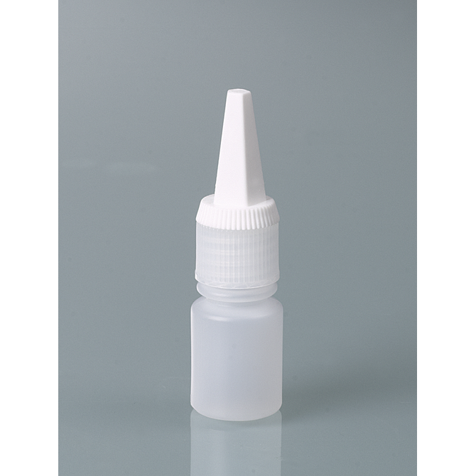 The dropper bottle can be re-closed with a separate screw cap. The long and very pointed dropper tip is sealed and cut off before first use. The dropper tip can be shortened to adjust the drop size.