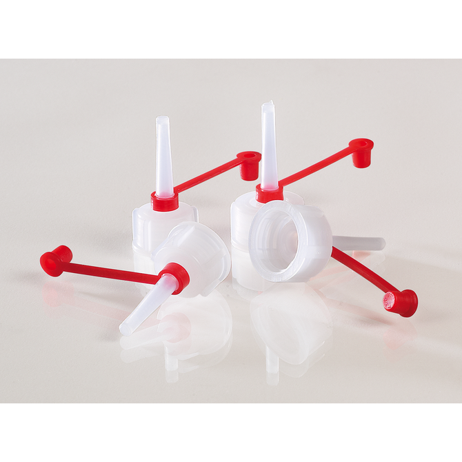 These handy dropper caps with integrated sealing cap fit bottles with GL, 18, 25 and 28 threads. They are ideal for precise dosing of liquids.