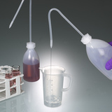 The wash bottle is a proven solution for quick dispensing or fine, precise and controlled dosing of small quantities of liquids, for efficient filling or absorption and storage of liquids.