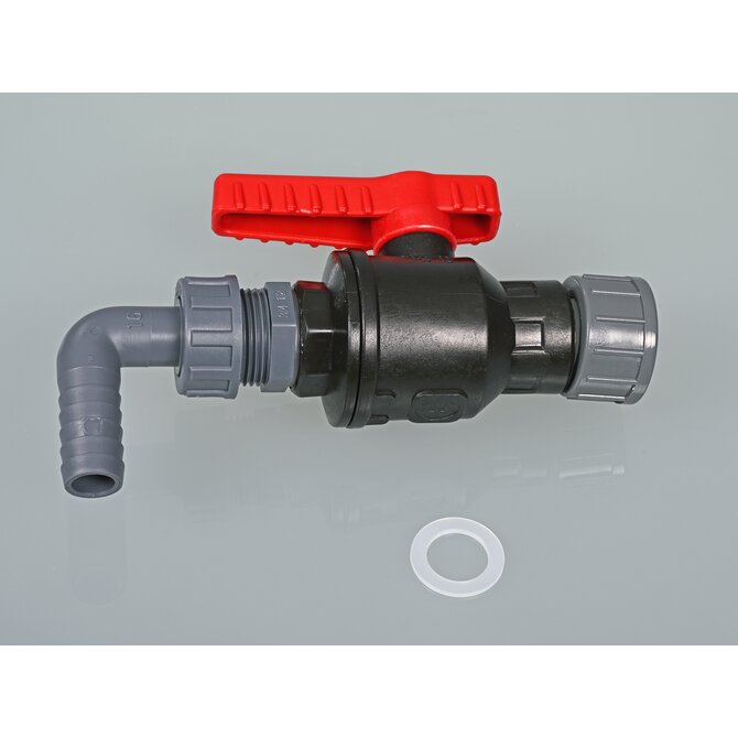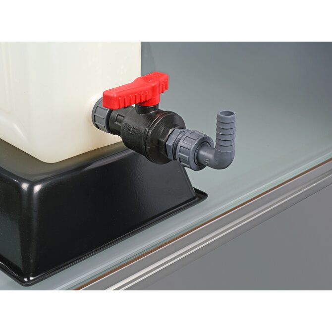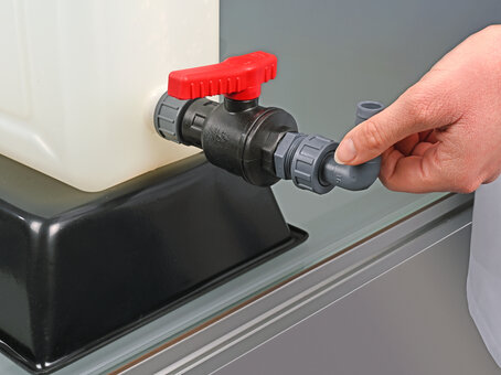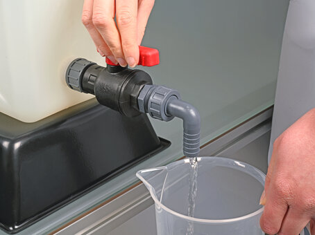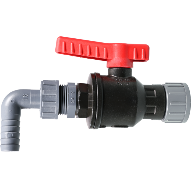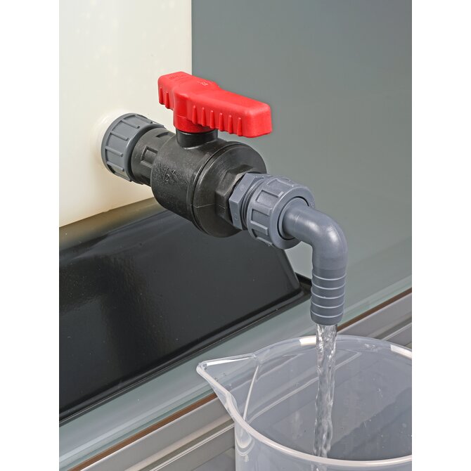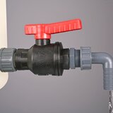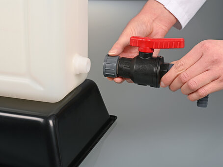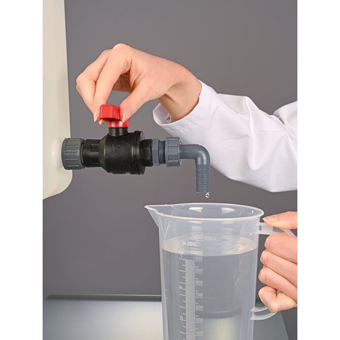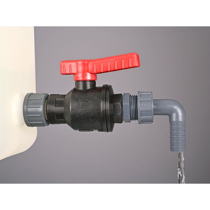 Ball valve PP fits all containers with G 3/4" connection thread. It can be attached to nearly all containers with thread adapters. Robust industrial quality, large flow.