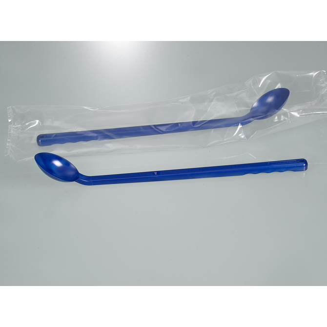 Detectable spoon curved, long handle, blue