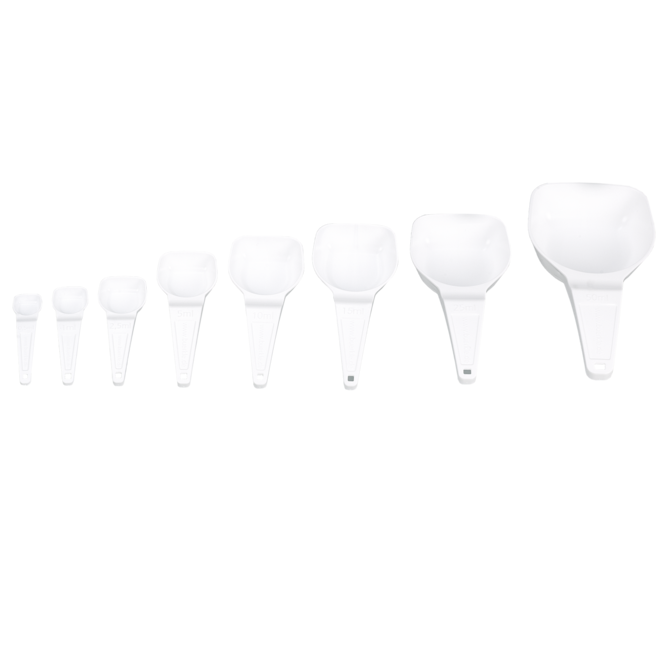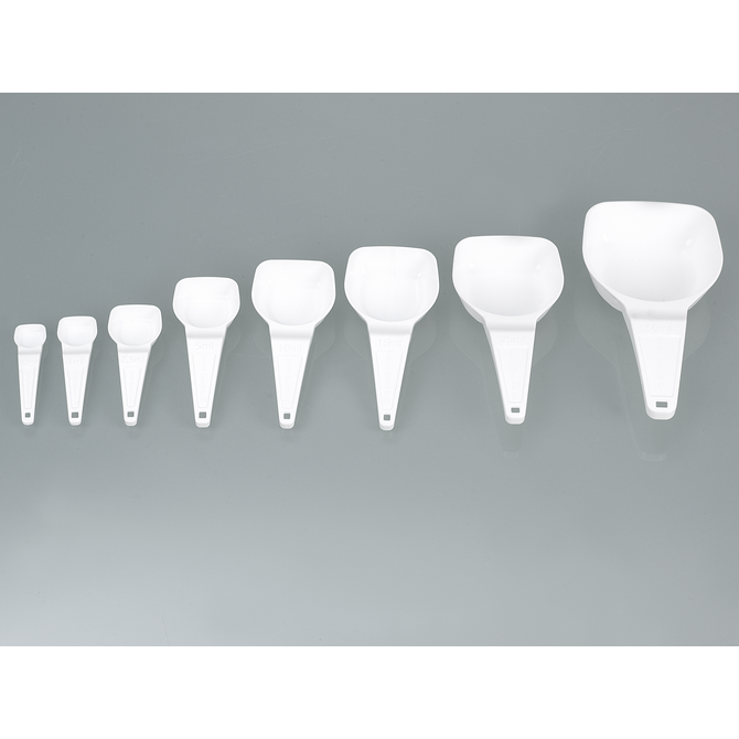 The disposable dosing spoon is suitable for use as a sample spoon for taking small sample quantities. Since the plastic volumetric spoon was developed for single use, there is no cleaning and the possibility of cross-contamination and impurities is excluded.